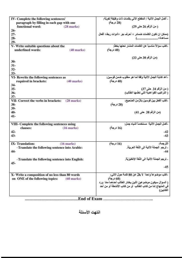 - توزيع الوقت بين كتابة الموضوع الإنشائي وبين حل أسئلة القواعد والاستخراجات.
